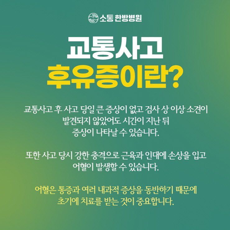 사고 직후에 복잡한 보험 서류보다, 본인의 신체 상태에 관해서 무엇보다 우선적으로 정확하게 살피는 것이야말로 가장 급한 일이었음을 많은 분이 절실히 느꼈습니다.